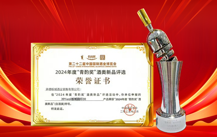 板城酒業(yè)-龍印30榮膺2024年度“青酌獎”