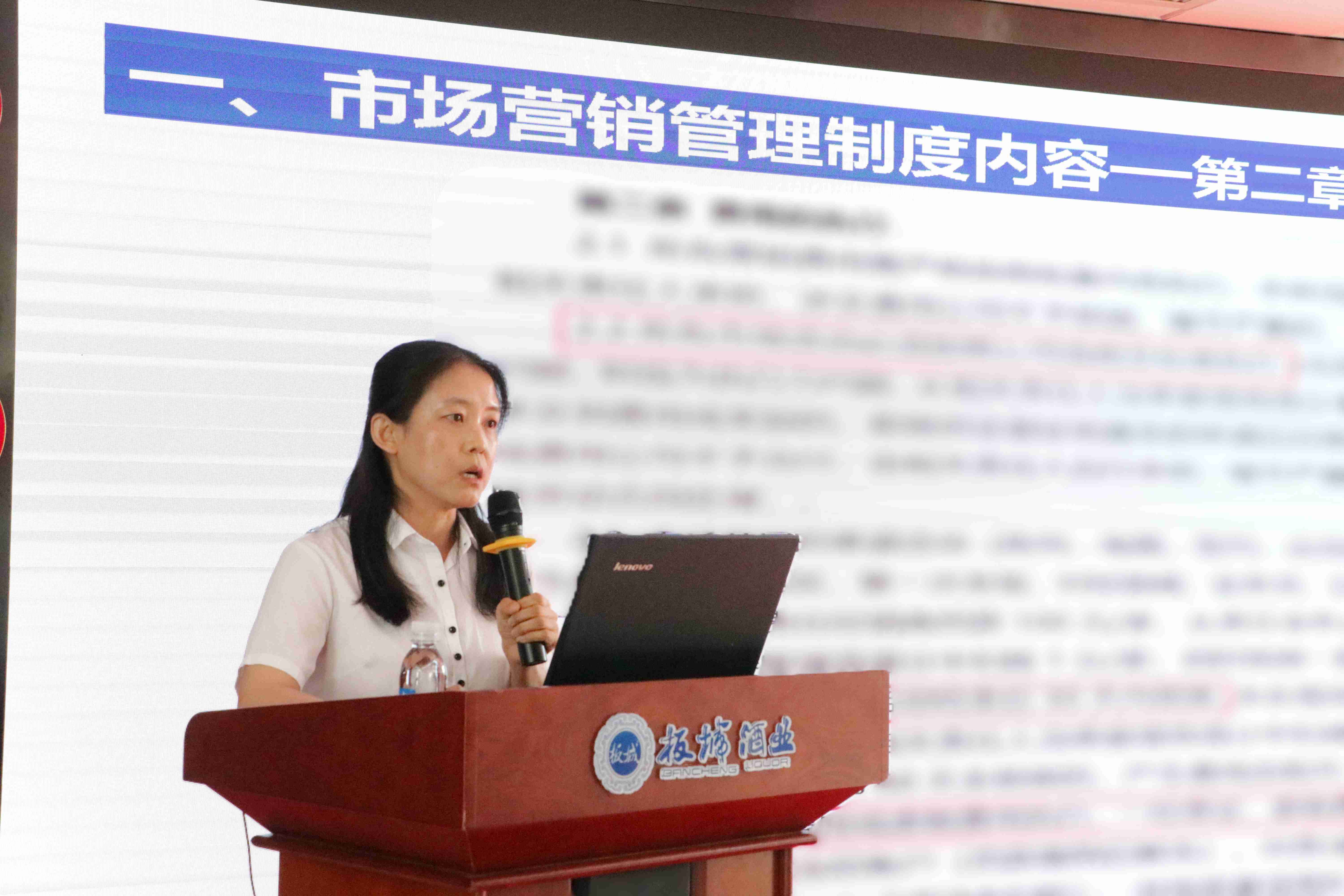板城酒業(yè)營銷管理部主管金百靈講解公司規(guī)章制度,督促大家共同營造風(fēng)清氣正的工作氛圍,提升公司資源的投入效能,建立良性有序的市場秩序,堅決保障公司戰(zhàn)略有效落地。