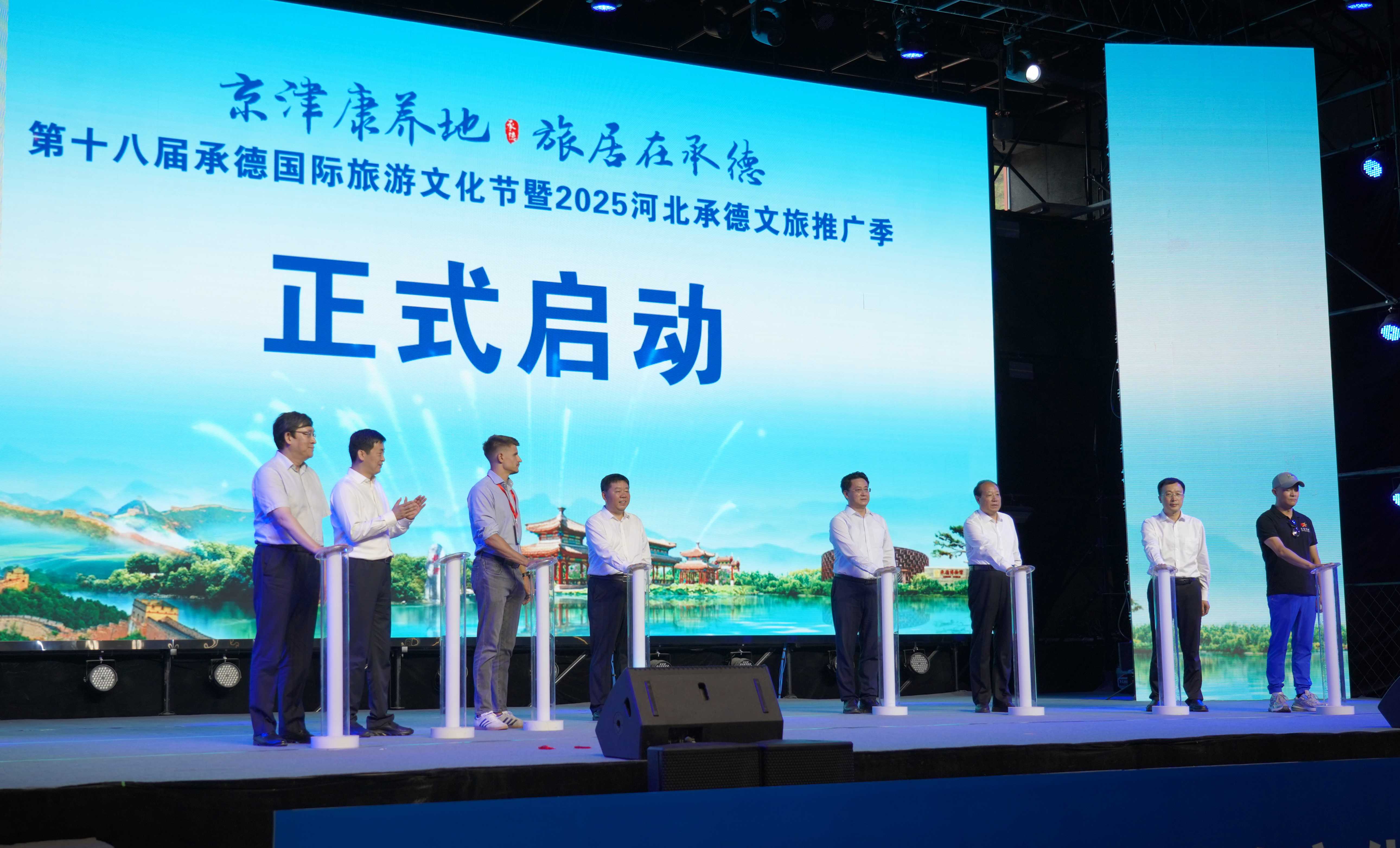 在熱烈的氛圍中,與會領導共同按下啟動裝置,標志著第十八屆承德國際旅游文化節暨2025河北承德文旅推廣季正式啟幕。