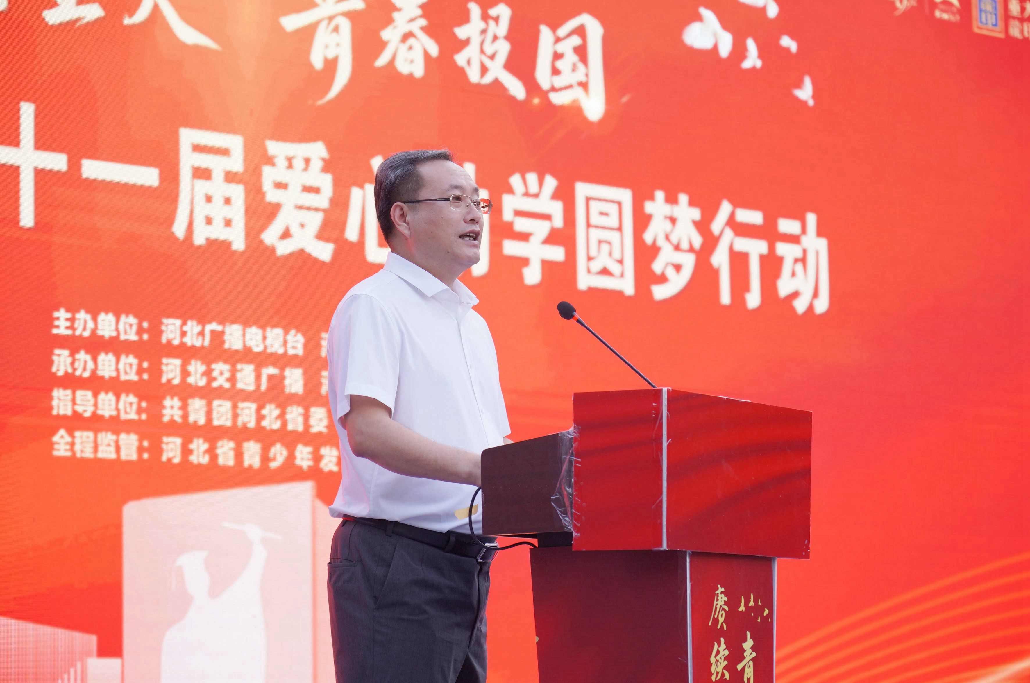 河北廣播電視臺(tái)副總編輯邊宇峰致辭,邊宇峰講到:“作為主流媒體、責(zé)任擔(dān)當(dāng),河北廣播電視臺(tái)始終與時(shí)代同行,與人民同向。值此抗戰(zhàn)勝利八十周年,我們賦予本屆活動(dòng)深沉的主題——‘賡續(xù)星火青春報(bào)國(guó)’這不僅是一次助學(xué)行動(dòng),更旨在為學(xué)子注入時(shí)代精神與國(guó)際視野,將個(gè)人理想熔鑄于民族復(fù)興的壯闊征程。讓我們攜手并肩,讓助學(xué)‘星火’代代相傳,照亮青春夢(mèng)想,共繪時(shí)代華章!”